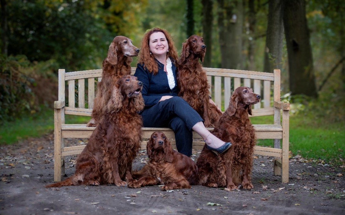 My name is Susan Mogony and I am delighted and honoured to be judging the Eurodogshow 2025 in Kortrijk. I have had Irish Setters since 1984 and together with my mother we started the Tussocks Manor kennel in 1993. We started with lines from the famous Hunters Home kennel and from lines of England. Today I still have Irish Setters and occasionally I breed when time permits. For these litters I use lines from different countries, where type is very important to me in addition to construction. In these litters there is always a showchampion among them, which I am very proud of. In 2014 I became a judge of the Irish Setters.